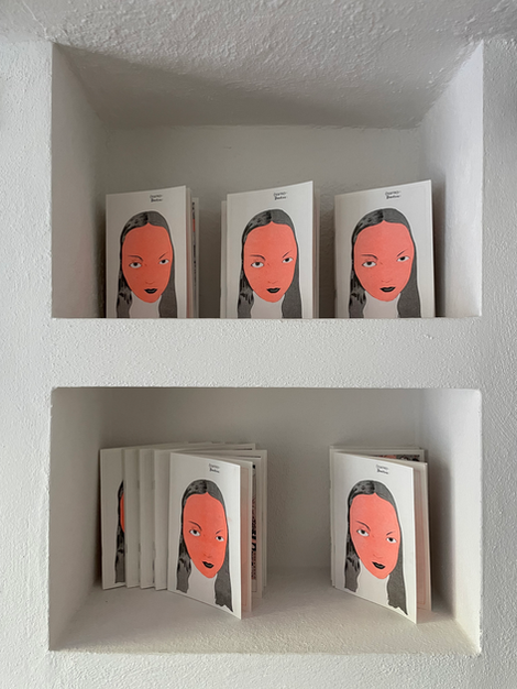 L’allestimento stesso gioca con la cornice, con ciò che delimita e ciò che sfugge: la narrazione diventa cornice, la figura diventa riflesso, e lo spettatore è invitato a entrare in questa danza di sguardi incrociati. Il cuore dell’esposizione è infatti una tavola centrale, senza una cornice convenzionale ma incorniciata dalla narrazione stessa: un giro di tavole più piccole costruisce intorno a lei una struttura narrativa e visiva che sovverte il concetto di margine e di centro. Lì si afferma l’idea che la storia stessa diventa cornice, e ciò che sta attorno è parte integrante del senso. Due grandi immagini speculari, poste su pareti contrapposte, mostrano il volto femminile di chi guarda: una in positivo, l’altra in negativo. Dentro e fuori. Interno ed esterno. Sé e altro. L’intero percorso espositivo invita lo spettatore a ripercorrere questa doppia via: cosa porto dentro da ciò che vedo? E cosa del mio sguardo si riversa nel mondo? Una messa in discussione dei confini tra esperienza e rappresentazione, tra intimità e comunicazione. Una riflessione visiva su come l’altro ci vede, e su quanto di quello sguardo ritorna a noi trasformato.